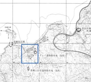 先史代から脈々とヒトの住んできた、古い土地です。下記角川の遺跡地からの推定が正しいなら、「海側の高み」に寄った集落だったことになります。巻末詳述。