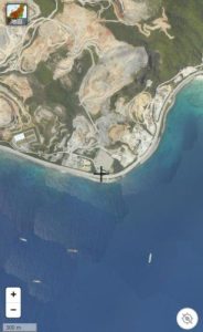 後、この位置の航空画像をみて胸を突かれました。海側道路を通る印象よりずっと激しく、この沿岸は乱開発された非情な土地です。