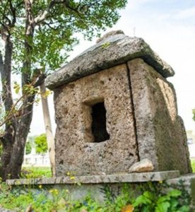 (続)高さが約90cmで,幅は約60cmの方形となっている。側面は4面のうち道路に面した部分のみが確認され,紙を入れる約12cmの円形の穴がある。地元ではイシドゥールーと呼び,また「髪」を焼いたとも言われ今後さらに調査研究していく必要がある。