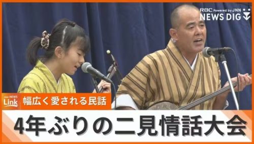 (ていび)TBS NEWS DIGI 2023年11月20日(月) 11:48 RBC「小学校6年生から89歳までが参加 世代を超えて愛される「二見情話大会」が4年ぶりに開催」 URL=https://newsdig.tbs.co.jp/articles/-/846293?display=1