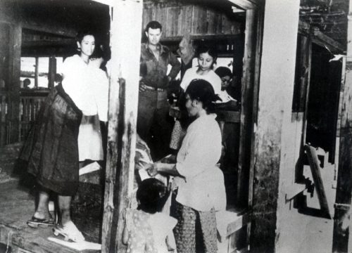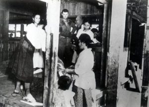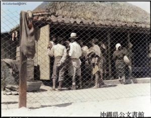 (なはし)那覇市歴史博物館 資料名:収容所生活/久志配給所 資料コード:2006195 撮影時期:戦中 配架コード:055-A-04 URL=https://www.rekishi-archive.city.naha.okinawa.jp/digital-museum/4/44533