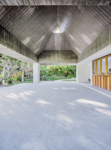 大きな影を落とす雨端の空間、周囲を囲む琉球石灰岩を積み上げたヒンプン、外壁や屋根に刻まれた陰影が、沖縄の風土を表し、「沖縄の建築とは何か!」という力強い問いかけが、形を持って目の前に迫ってきた。