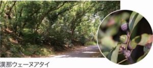 漢那集落の東にある森は、ウェーヌアタイ(俗称:ヨリアゲの森公園→GM.)と呼ばれ、石灰岩地帯と非石灰岩地帯の異なる環境で生育する植物が分布する貴重な森となっています。