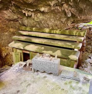 (かすり)kasurichan1010 2024/アッチャーアッチャー@沖縄パワースポット/ヨリアゲ森の鍾乳洞穴に造られた風葬墓@宜野座村漢那「漢那ウェーヌアタイ木製家型墓」 URL=https://plaza.rakuten.co.jp/gomachanoklnawa/diary/202403020000/