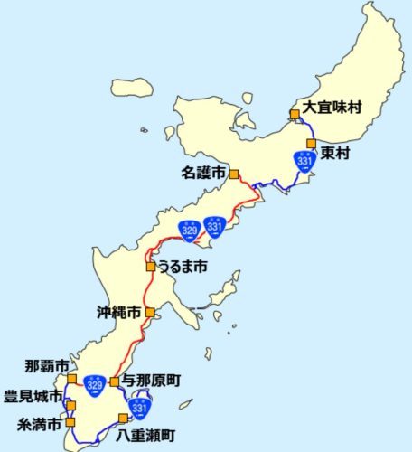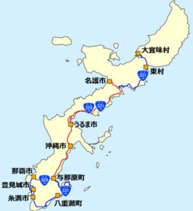 国道331号という道は、何と昨日伺った大宜味村塩屋が北の始点でした。他道と無茶苦茶重複してるものの、沖縄本島東海岸から南をグルっと回って那覇の明治橋西口(奥武山公園北東)が終点です。