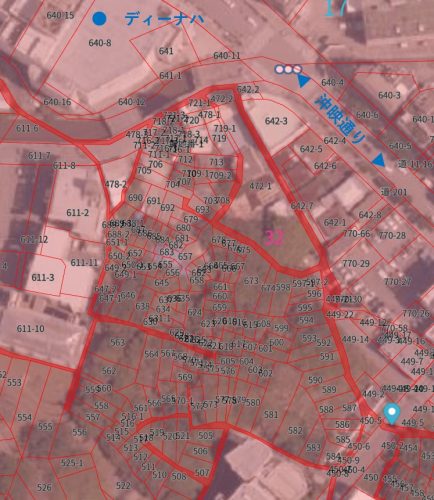 カミガーなど井戸が東西に並ぶ山塊部と平地の境ラインのことでしょう。ここを古島(最初の集落地)にしていたということは、まず水資源を求めて住みついたということでしょうか。
