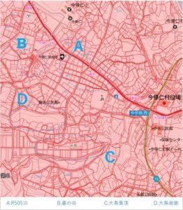 の画像は、次回に至るまで非常に重要なマップになりました。この回と次回・大島訪問に至る地点をプロットすると、次のようになります。