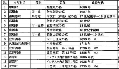 書き方が微妙ですけど、既に見たように「17C後半より登場」と言ってもそれは伊江御殿や護佐丸のことです。庶民の墓制としての亀甲墓の広まりは、廃藩置県(1871年)以降。