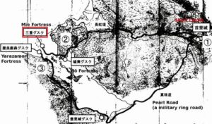 I Fortress, nearby but further into the harbor, functioned as the main arsenal, distributing weapons to the hiki soldiers as they assembled at their defensive positions. Tomi Fortress, deep inside the harbor, was the command and control center. The Pearl Road, built explicitly for military purposes, connected these fortresses to each other and to Shuri Castle.(29)〔後掲Smits Gregory〕