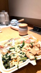 これが──美味かった!西柿西和鶏蛋、ハムセロリ、田舎豆腐煮の三種に小さな奴たけど魚が付いて18元??