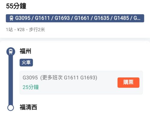 G3095 (更多班次 G1611 G1693) 25分鐘~ 福清西