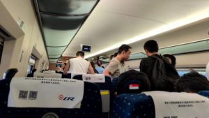 たまたま前席の爺さんが福清西の到着時間を掃除のオバさんに訊く。掃除のオバさんなのにわざわざスマホで調べてご回答。福州南を経て0847着。