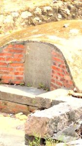 T字路──先は気づかなったけど──北東角に亀甲墓。沖縄のと違い戸口は塞がれてる。いや墓碑をのければ穴があるのか?