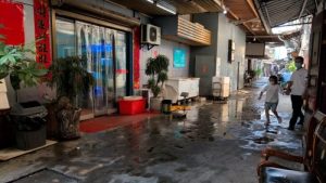 1218 后鉄埔を南へ。食堂街から問屋街と姿を変え続く。