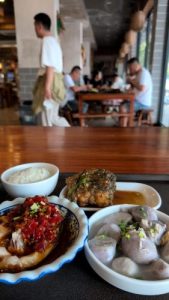 多分清蒸魚、西柿西鶏蛋、大根スープ、辛漬物、木桶飯550