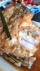 ボラみたいな魚のぶつ切りを揚げたもの。アジ南蛮みたいな歯触りながら酸っぱくはなくジワリと味わい。