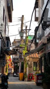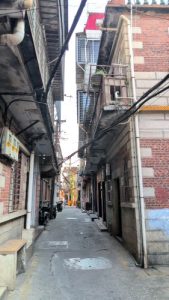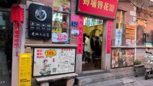1633裴巷にぶつかるT字。coffeeBOTTOM。この辺りには民宿多数。先のマップでは奥に東行道がある。左折北行。
