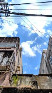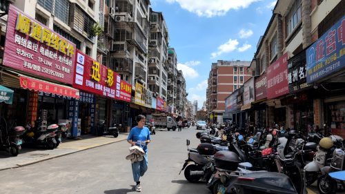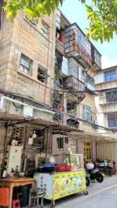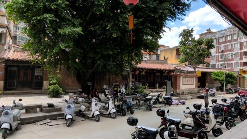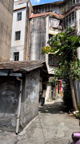 裏手からad.凃(サンズイ)門街。民居の裏手は現代建築になっててヤシの木が天を突く。東行に転ず。1045
