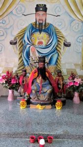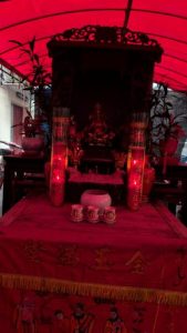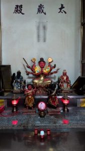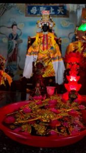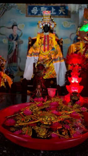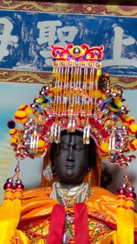 本殿。左右にきちんと従神。虎爺なし。銘は天上聖母。右にもう一体。右下にも小さな像一体。