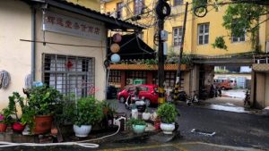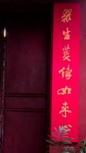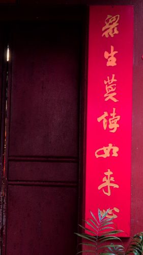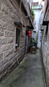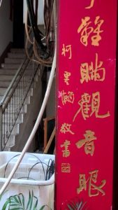 アパート内に祠。0720、しばし雨宿り。鍵のかかった部屋内に観音がある……らしい対聯。