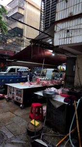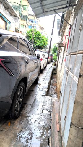 読経の声。昔は好い岸辺だったろうという川道。ad.朝陽新村。0852