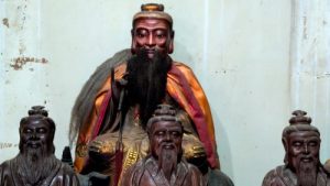 内部の神像は中央から右へ老人、赤顔髭、女性と続く。