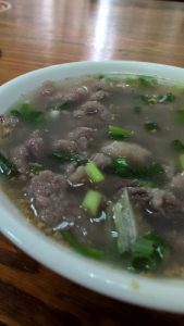 牛肉湯は、ちょっと感動する淡味でした。牛肉そのものは甫田の何とかみたく薄い衣で覆われてる。汁とこの、味覚的には鈍い肉とを一緒に口に含むとなかなかに生々しいスープになるのです。西欧系のスープの上品さのない、獣じみた中華スープです。