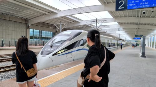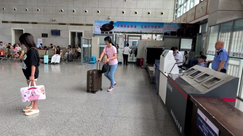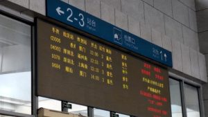 特に問題なく走ってるらしい。この駅は、売票処の横に一つだけある安全検査から入った待合室が、やはり一つのみ。つまり平屋構造。站台は三つ……1200発G3006香港西九龍始発(!)厦門終到站は2站台で、2と3站台は改札の左にあると矢印があるから、多分階段を渡るんだろう。