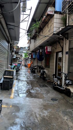 1501菜媽街56から左折、やっぱりad.は菜媽街へ。先峰營小区の北外縁の道らしい。