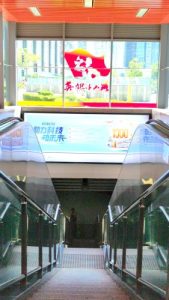 車内に「養成乗車 閲読習慣」という地鉄公告。蔡塘からは客が倍増する乗車。