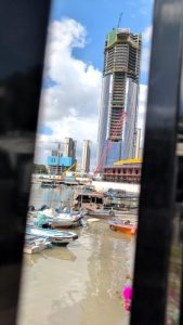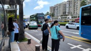 1052 58にのる。何厝の島を過ぎても工事現場がしばらく続く。バス停・遊艇碼頭北站。まだ工事現場が伸びるからこの港はまだなんだろう。劇院。まだ花園。