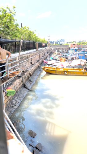 港奥。漁船から直接貝をセリしてる。港側には入る道なし、つまり今来た道のみ。港に船は50はない。岸の石積は残るけどさほど古くはない。舟に目なし。家船らしきものはない。つまり何厝は本当にこれで消えつつある。