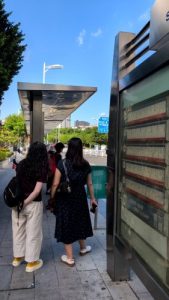 新華路65の西、二つの道の西側へ──あれ?ここが実験小学?来すぎてる。戻る。──いやどうも全部電子ゲートになってしまったらしい。バス停へ。
