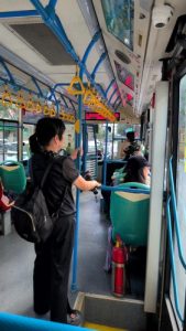 1538 86路が来た。乗車。なぜか入口に厦門市保の制服の女性が見張ってる。──公務だから立ってるのか?見上げた心がけだ、クラリス。