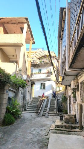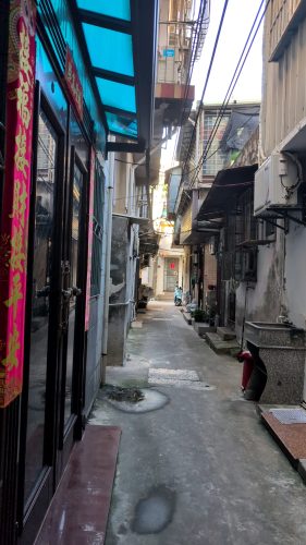 今の案内にあったad.靈應殿巷14。劉阿不便利店──便利じゃなさげな小店の向こうから入ってみよう。1603右折東北行。
