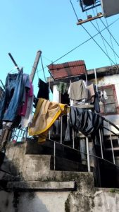 思明環衛のオレンジ制服が干してある。