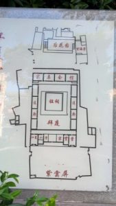案内板の「江夏堂旧址平面図」。1643