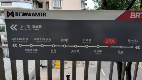 次が上站・九中。まだ廈禾路にいるぞ?今から后埭渓路に左折だぞ?そうか、ここから一駅半か。前回物凄く歩いた気がしてたけど。