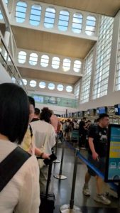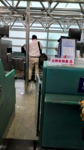 1148チェックイン。の際にまた「wait moment」と待たされる。ここではチケットを渡されずに、合格の時にパスポートごと返してくれるので分かりやすいけど──何かずっとピーピーと警告音が鳴り響いてる。