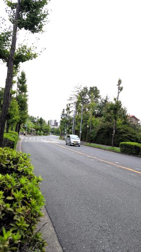 0942高野台側へ車道を渡り東から侵入。傾斜は結構あり、これも高陽に酷似。桃山台駅行きのバスが登ってくる。