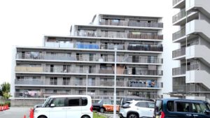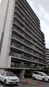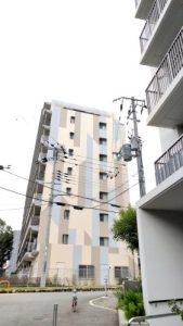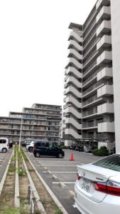 こちらはやや古い。ただベランダ柵に干物はない。アンテナも二つ見えるけれどほぼベランダ内に規則を守って設置されてる。