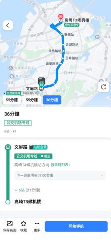 高德地图(経路:文屏路(快速公交站)~厦门高崎国际机场T3航站楼)