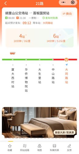 高德地图(経路:浮屿站(公交站)~厦门昙花民宿[dammy])