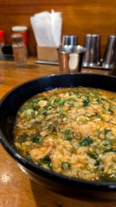 感覚的に、ナクチの端正な味覚を濁すように想像され易いコプチャンは、深く濃くシツコい出汁です。ナクチの淡く薄い魚介味と、見事に別水深を交叉します。