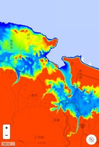 やはり散村に見えます。港があった時代には、岬の高台上の広い平地だったでしょう。少し規模は小さいけれど、今帰仁城の地勢に類似します。