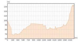 地理院地図で断面を切るとこうなります。
