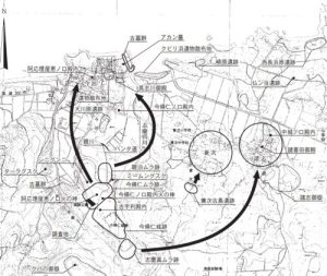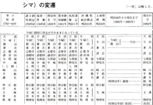 さて、ここから今帰仁西の島の陸上史に移ります。その前に、土地勘のない我々ナイチャーのための参考として、寡黙庵さんの示す小字の変遷図を掲げておきます。