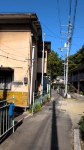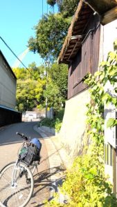 ポスト横から右折して集落内へ。1025。ad.古三津一丁目16-6