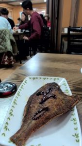 何と魚が付いてきた!この下品な丸揚げカリカリ魚、日本では意外と最近見なくなったので、韓国でしか食べれなくなりました。※「骨煎餅」みたいな形で出すところが日本でも稀にあるけど。