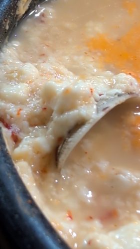 ジーンと重振動に痺れる豆腐。佐賀川島豆腐、広島三良坂佐々木豆腐に通じるというところ。ほろほろと淡白なのに微かに苦みのある絶妙な濃さ。計四つ入ってたアサリからの出汁と緩いコチュジャンだけのトッペギが、一掬いずつ息をつくほど美しい旨味です。